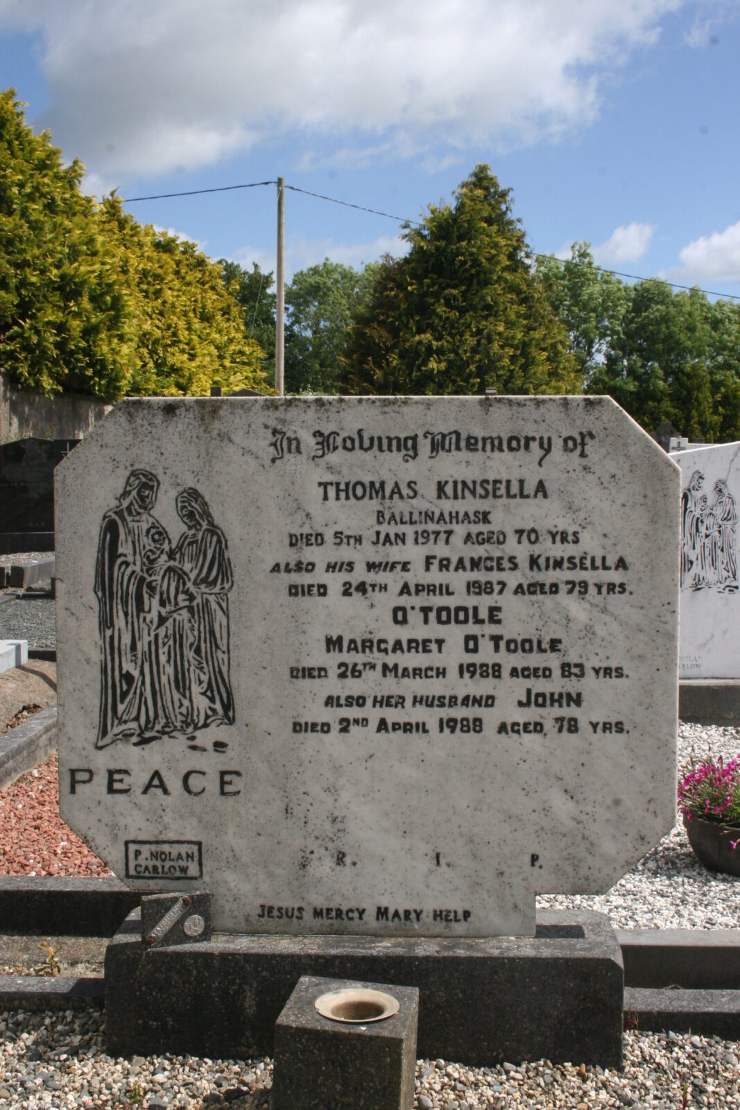 In loving memory of Thomas Kinsella Ballinahask died 5th Jan. 1977 aged 70 yrs.