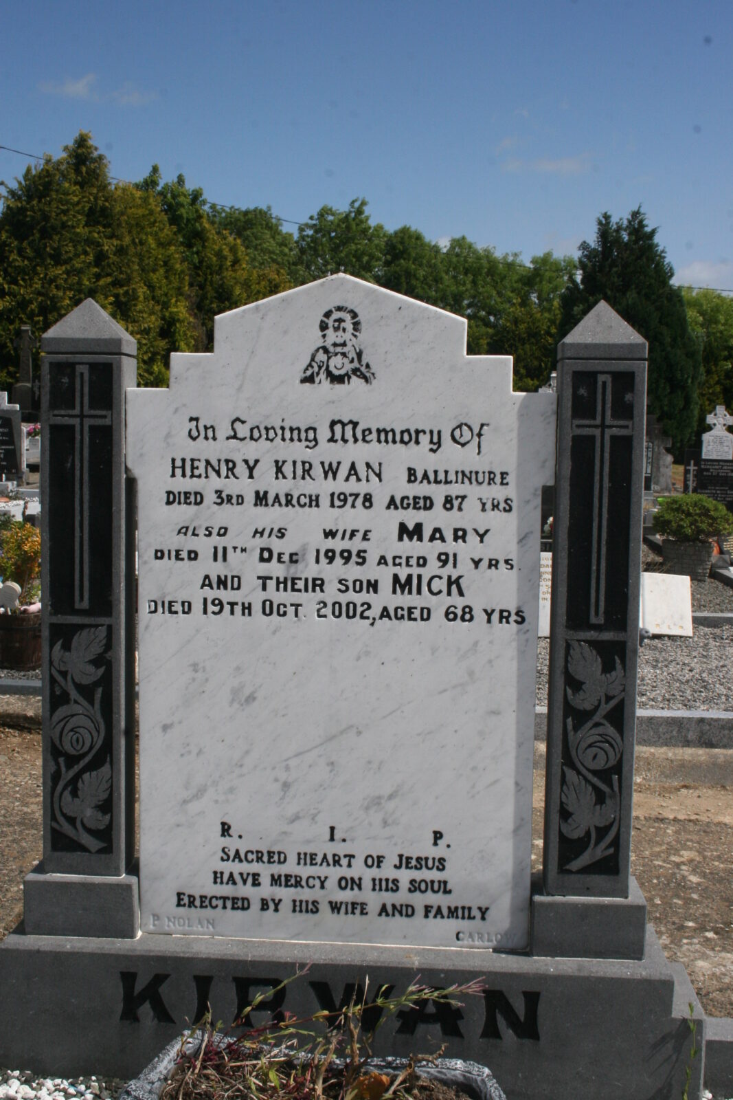 Headstone stone maker: P. Nolan Carlow.