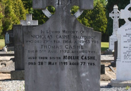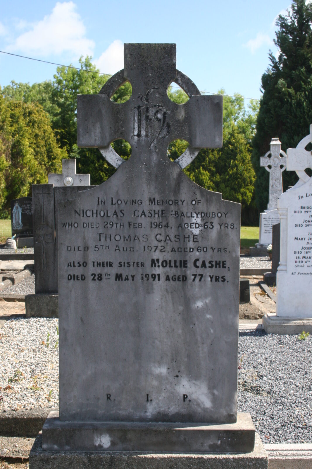 In loving memory of Nicholas Cashe Ballyduboy who died 29th Feb. 1964 aged 63 yrs.