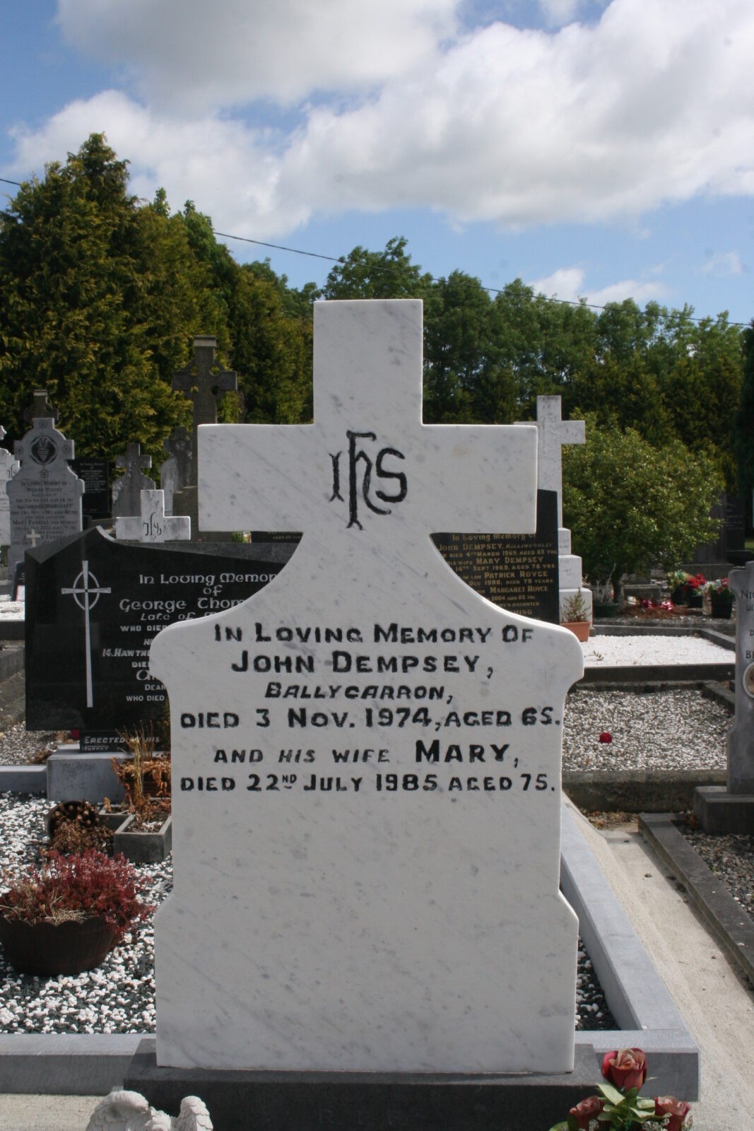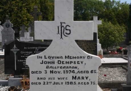 In loving memory of John Dempsey Ballygarron died 3rd Nov. 1974 aged 65.