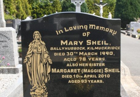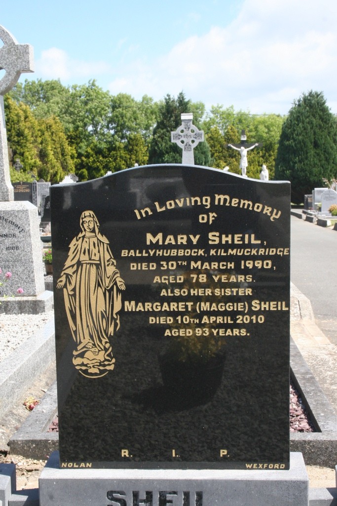 In loving memory of Mary Sheil Ballyhubbock, Kilmuckridge died 30th March 1990 aged 78 years.