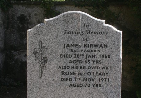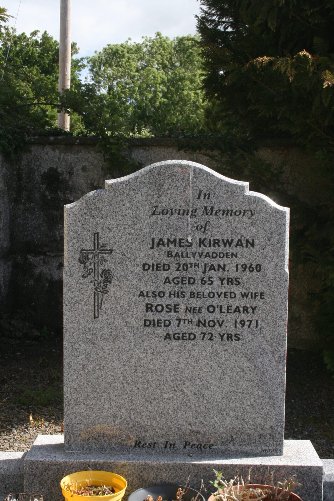 In loving memory of James Kirwan Ballyvadden died 20th Jan. 1960 aged 65 yrs.
