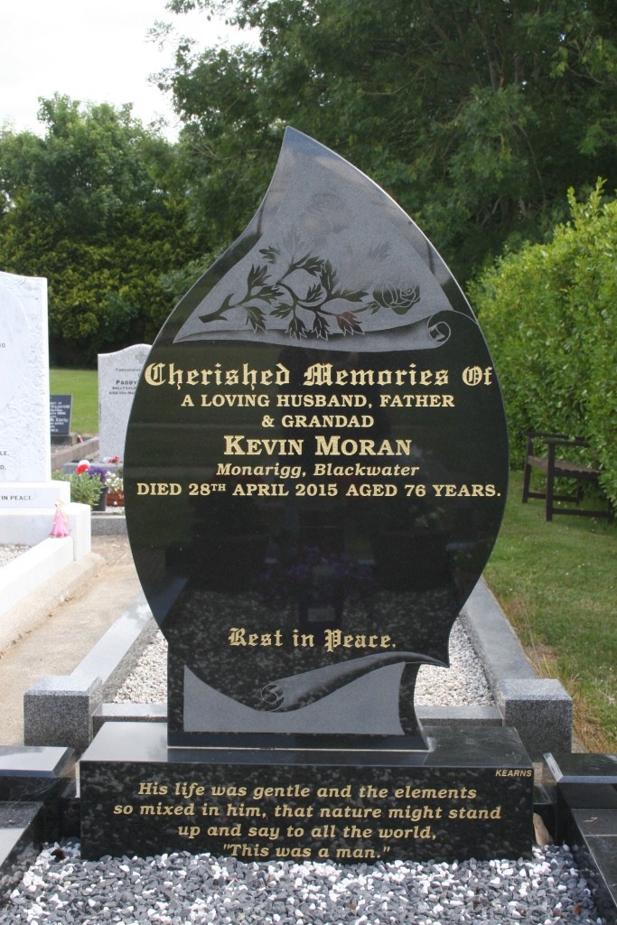 Headstone dimenions: H 108cm, W 66cm, T 8cm