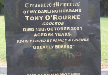 Treasured memories of my darling husband Tony O'Rourke Coolroe died 13th October 2001 aged 64 years.