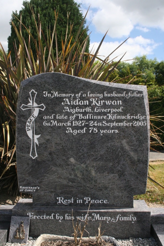 In memory of a loving husband & father Aidan Kirwan Aigburth, Liverpool and late of Ballinure, Kilmuckridge 6th March 1927- 24th September 2005 aged 78 years.