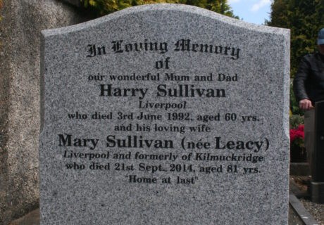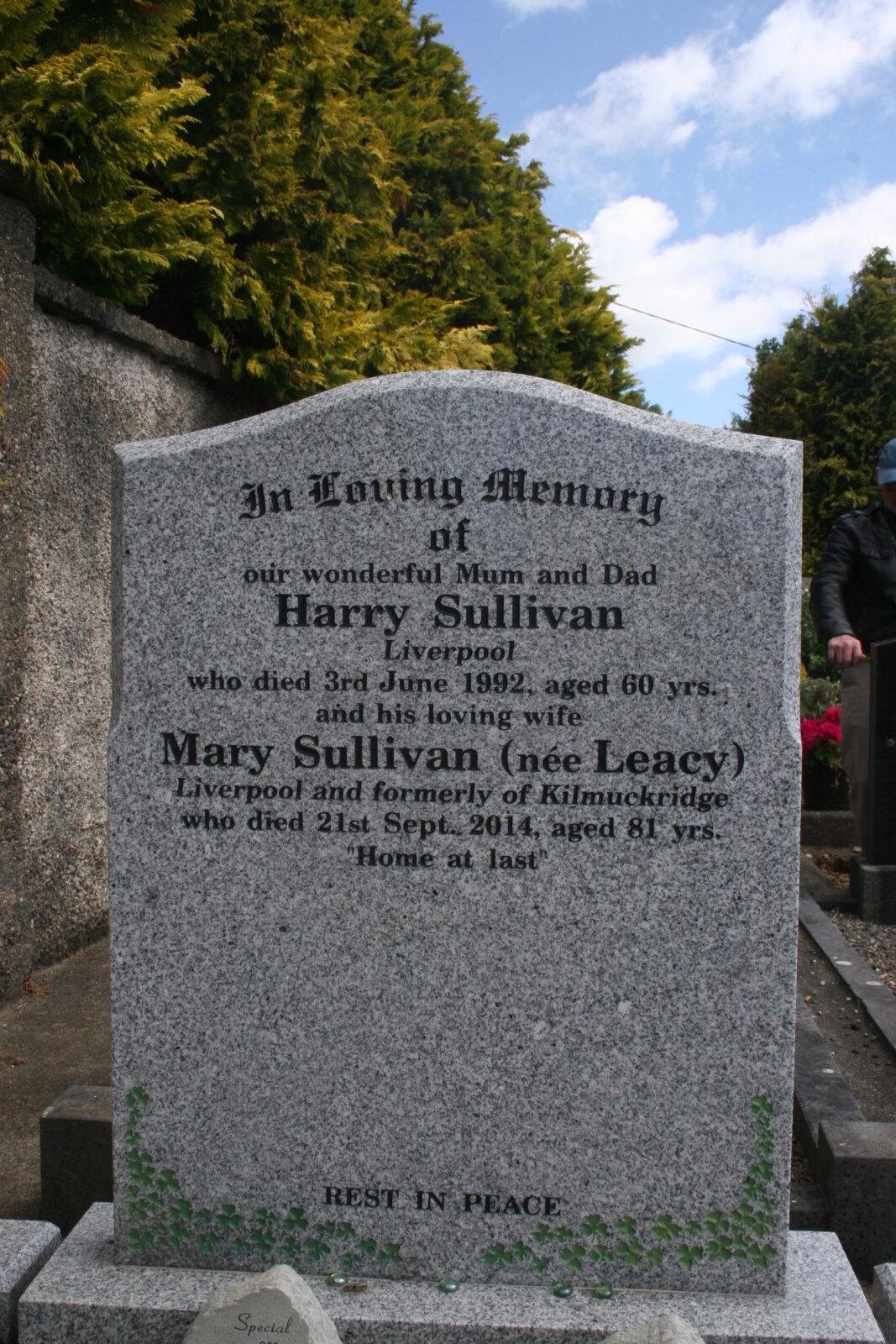 And his loving wife Mary Sullivan [ nee Leacy ] Liverpool and formerly of Kilmuckridge who died 21st Sept. 2014 aged 81 yrs.