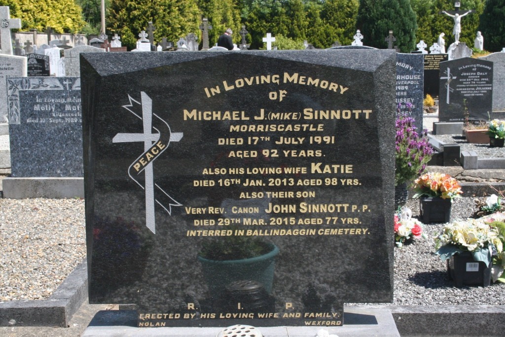 Also their son Very Rev. Canon John Sinnott P.P. died 29th Mar. 2015 aged 77 yrs.