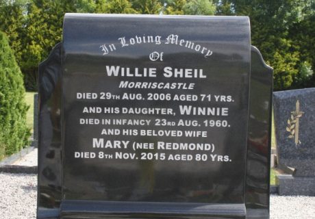 Headstone dimenions: H 93cm, W 82cm, T 15cm