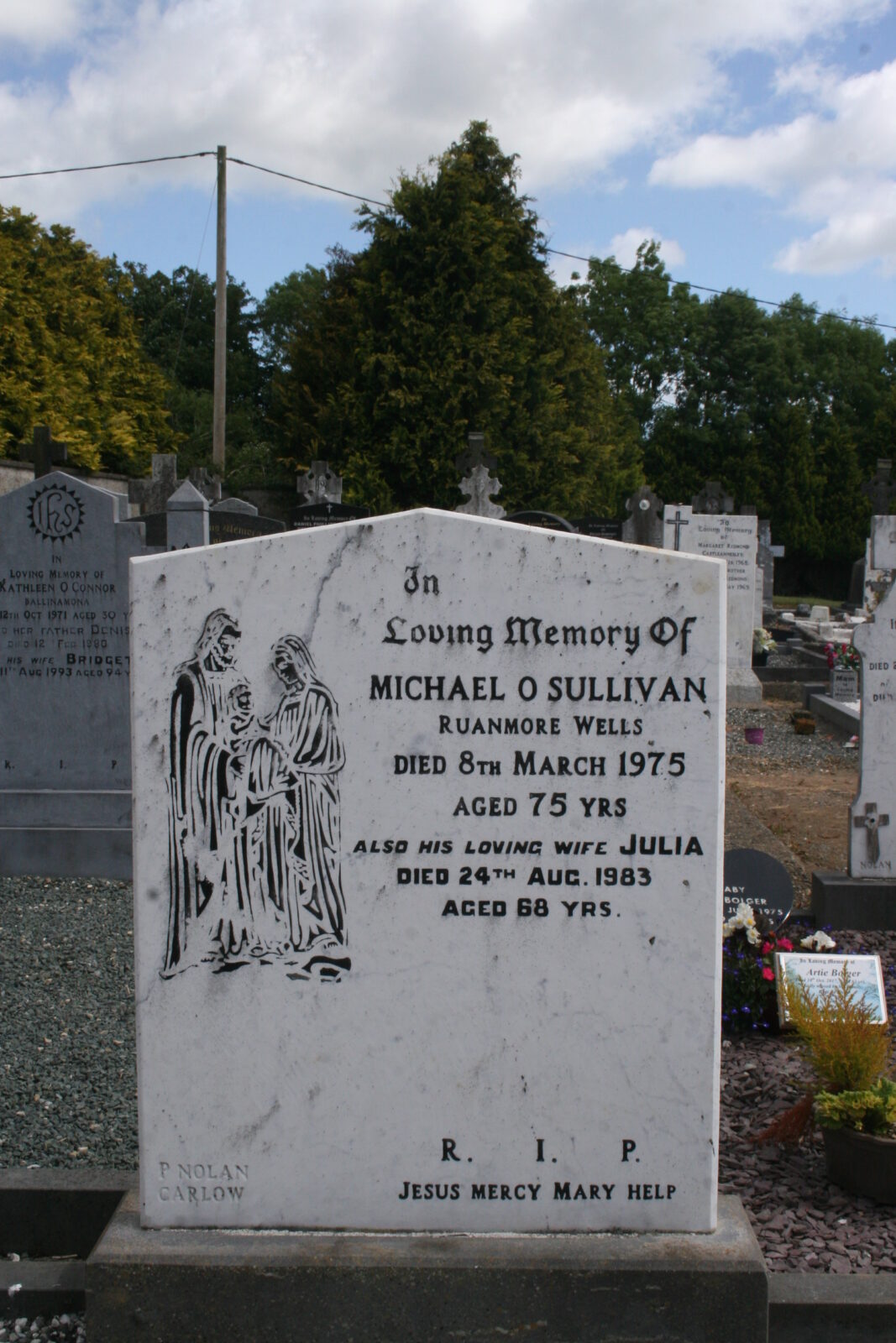 In loving memory of Michael O'Sullivan Ruanmore , Wells died 8th March 1975 aged 75 yrs.