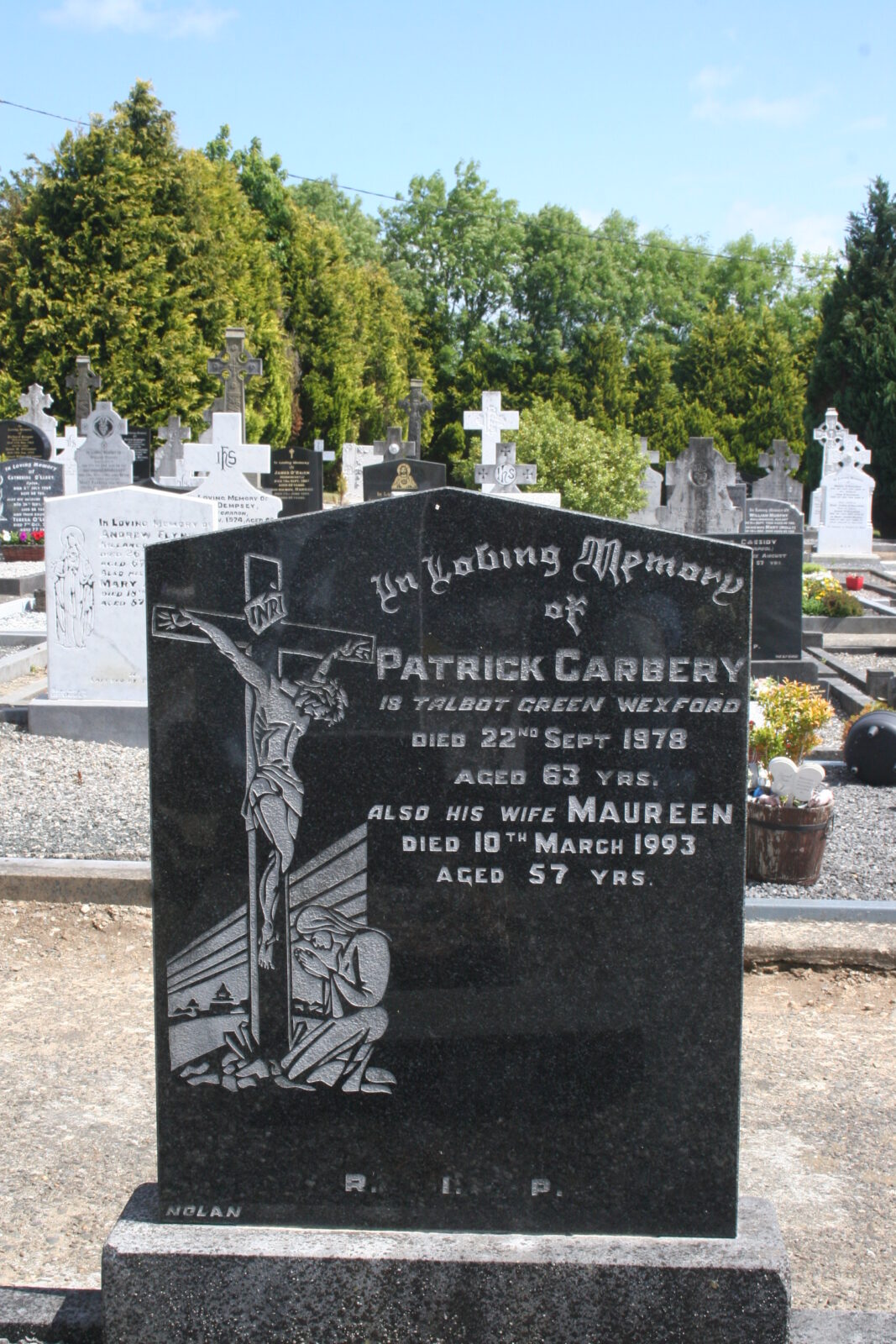 In loving memory of Patrick Carbery 18 Talbot Green, Wexford died 22nd Sept. 1978 aged 63 yrs.